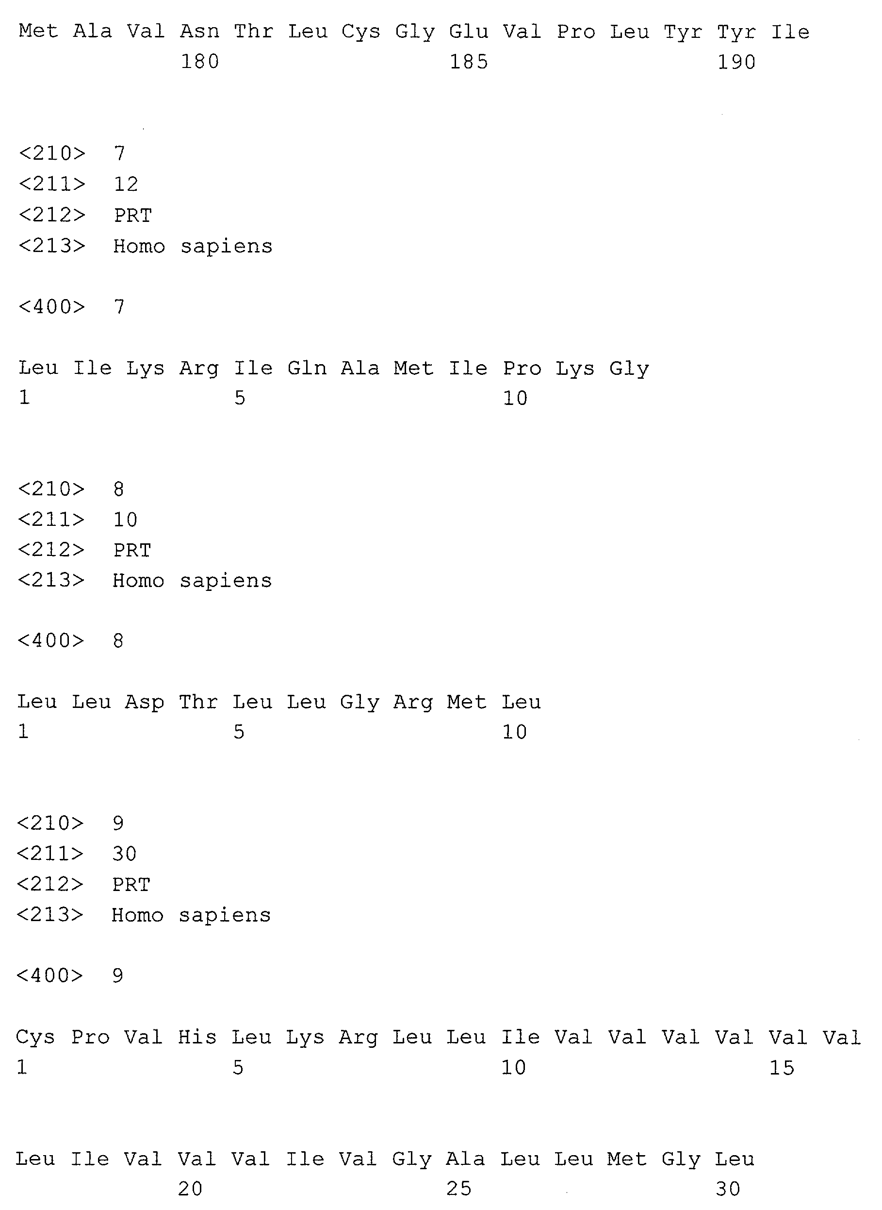 SEQ ID No. 8: Аминокислотная последовательность с 257 до 266 в последовательности SEQ ID No. 2 (SP-B фрагмент);