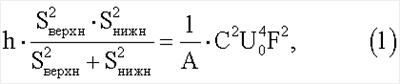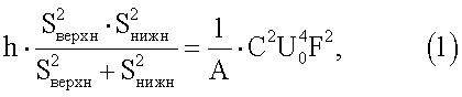 где h – расстояние между отверстиями верхнего уровня и отверстиями нижнего уровня, м; Sверхн – суммарная площадь отверстий верхнего уровня, м2; Sнижн – суммарная площадь отверстий нижнего уровня, м2; А=(2÷30)·1013 Дж2/(м5с2) – энергетический коэффициент согласования; С – емкость накопительного конденсатора, Ф; U0 – напряжение заряда накопительного конденсатора, В; F – частота повторения импульсов генератора импульсов поджига, Гц.