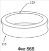 На Фиг.52В-58 изображены примерные варианты исполнения насадок 115 для губ, причем на Фиг.53В, 55В представлены альтернативные варианты исполнения со скошенным краем, а на Фиг.57В – с широким краем 125. Размер края может быть изменен в зависимости от содержимого емкости или с целью повышения удобства пользователя при прикладывании насадки для губ ко рту. Посредством насадки для губ 115 можно обеспечивать дополнительный тепловой барьер при использовании ее в сочетании с муфтой 5 и крышкой 50, образовывая дополнительную теплоизолирующую воздушную камеру над самым верхним опорным кольцом 15. С помощью насадки для губ можно также обеспечивать охлаждение поверхности при укладке ее на край емкости путем предоставления возможности контакта горячего содержимого емкости с холодной поверхностью до потребления его пользователем.