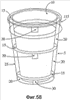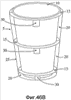 На Фиг.23А и 23В изображен адаптер 55, используемый для установки муфты и емкости в держатель емкости. В адаптере имеется широкий приемный край для введения емкости и изолирующей муфты. Кроме того, с помощью адаптера приспосабливают широкий край к более узкому краю, чтобы вставить в стандартный держатель емкости. Предполагается, что более узкий край может быть приспособлен к установке держателя емкости любого размера, включая расширение основания сочетания емкость-муфта, включая расширение основания для установки между двумя подлокотниками 60.