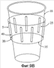 На фиг.6А-20В изображено несколько вариантов исполнения изолирующих муфт 5 с множеством конструктивных балочек 40 для поддержания веса емкости 10. Хотя при использовании конструктивных балочек возникает больше контактов, чем в других вариантах исполнения, описанных ниже, ребрами обеспечивают очень хорошую поддержку, таким образом обеспечивая возможность для пользователя защищать емкости ряда различных весов. Емкость может быть большой или маленькой и содержать пищевые продукты или напиток, но с помощью изолирующей муфты соответствующих размеров все равно можно поддерживать емкость 10.