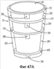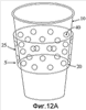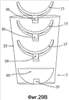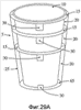 На фиг.26А, 27А, 28А и 29А изображен примерный выбор изолирующих муфт 5 с емкостями 10, вставленными в муфты 5, с количеством опорных колец 15, оптимизированным с учетом возможности поддержания веса и с учетом размера емкости 10. Согласно сказанному выше с помощью опорных колец 15 образуют изолирующую воздушную камеру 20 между группой опорных колец 15 или между опорным кольцом 15 и основанием 65, с помощью которой способствуют предотвращению нагрева или охлаждения содержимого емкости 10, а также защите руки человека, держащего емкость 10. Изолирующей муфтой 5 может быть укрыта часть или, по существу, вся боковая поверхность емкости 10, в зависимости от соображений, связанных со стоимостью, изготовлением и хранением. С помощью язычков 30 обеспечивают поддержку для прикрепления опорных колец 15 к изолирующей муфте. Кроме того, с помощью каждого кольца образуют закрытую изолирующую воздушную камеру 20.