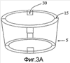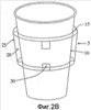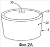 На Фиг.2А изображена муфта без емкости, вставленной в нее. Опорное кольцо 15, с помощью которого можно поддерживать емкость, является достаточно жестким, чтобы удерживать муфту в раскрытом состоянии даже тогда, когда емкость не вставлена в середину муфты. Технологический язычок или язычок 30 находится на наружном краю кольца, и с его помощью присоединяют кольцо 15 к наружной поверхности 25.