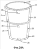 На фиг.26В, 27В, 28В и 29В изображена сложенная изолированная муфта 5, а также показано положение опорных колец 15 в сложенном состоянии. Когда пользователь раскладывает муфту 5 и вставляет емкость 10, все опорные кольца одновременно понуждаются к раскрытию, таким образом обеспечивая возможность введения скольжением емкости внутрь муфты. Настоящим изобретением предложена складываемая изолирующая муфта 5, модифицируемая таким образом, чтобы она содержала ряд опорных колец 15 и, возможно, основание 65, необходимое для поддержания емкости желаемого веса. Как таковые, количество или выполнение и место расположения опорных колец согласно настоящему изобретению должны быть такими, при которых при выбранном их расположении было бы оптимальным действие муфты 5.