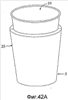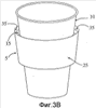 На Фиг.36А-41В изображены примерные варианты исполнения ряда форм изолирующих муфт, с помощью которых обеспечивают повышенную степень теплоизоляции емкости. Форма муфты может быть, по существу, цилиндрической, и стенки муфты могут быть соответственно параллельными, и таким образом можно создавать изолирующие воздушные камеры 20 больших размеров в нижней части муфты, чем в верхней части, если емкость сужается книзу. С помощью такой формы обеспечивают повышенную степень теплоизоляции нижней части муфты, где содержимое емкости находится наиболее продолжительный период времени. Кроме того, настоящим изобретением предложена установка опорных колец 15 в их позиции таким образом, чтобы минимизировать количество воздуха, циркулирующего между областями, близкими к опустошенной части емкости, и областями, где теплоизолируют еще заполненные части емкости. Кроме того, с помощью кольца 15 обеспечивают муфту повышенной конструктивной прочностью, таким образом предотвращая сдавливание муфты при обхвате или удерживании ее пользователем. В данном варианте исполнения изолирующая муфта 5 соответствует по высоте емкости 10, таким образом с ее помощью теплоизолируют, по существу, всю емкость 10. С помощью, по существу, цилиндрической муфты также обеспечивают емкость более широким и более устойчивым основанием, таким образом предотвращая потенциально возможные проливания или наклон емкости, пока он находится в муфте.