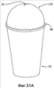 На Фиг.31А и 31В изображен другой вариант исполнения крышки, где с помощью конструктивных опор 40 можно улучшить функционирование куполообразной крышки 110. Благодаря вогнутой вверх форме куполообразной крышки 110 с помощью конструктивных балочек 40 улучшают функциональность крышки, обеспечивая возможность содержимому выступать над краевой плоскостью 90, благодаря чему эффективно увеличивают объем хранения емкости 10, в то же время сохраняя содержимое в условиях теплоизоляции и укрывания с помощью куполообразной крышки 110. К тому же изолирующая воздушная камера 20 может быть расположена либо внутри крышки для минимизации профиля крышки, как это показано на Фиг.31В, либо она может быть расположена снаружи, на наружной поверхности крышки, чтобы довести до максимума объем емкости. Через определенное отверстие 53 в куполообразной крышке 110 обеспечивают возможность введения «соломинки» 95 пользователем.