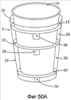 На Фиг.22А изображен примерный выбор фигурных отверстий в изолирующих крышках 50. Отверстия можно использовать для вентиляции, введения «соломинки» или пропуска содержимого емкости. Применение изолирующей крышки 50, описанной ниже, способствует созданию другого температурного градиента вокруг емкости, чтобы способствовать теплоизоляции содержимого емкости.