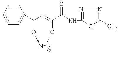 Бис{3-фенил-1-[2-(5-метил-1,3,4-тиадиазолил)]карбоксамидо-1,3-пропандионато} марганец формулы: