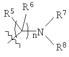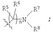 ; R2 представляет собой n равно от 1 до 2; R3 и R4 каждый независимо представляет собой водород или С1-12-алкил; R5 и R6 каждый независимо представляет собой водород или С1-12-алкил; и R7 и R8 каждый независимо представляет собой водород или С1-12-алкил, либо один из R7 и R8 представляет собой водород, а другой представляет собой 5-или 6-членный гетероциклил, содержащий один атом азота, либо R7 и R8 вместе с атомом азота, к которому они присоединены, могут образовать группу амидинил, группу мочевина, группу гуанидинил или пирролидиновое кольцо, которое возможно замещено аминогруппой.