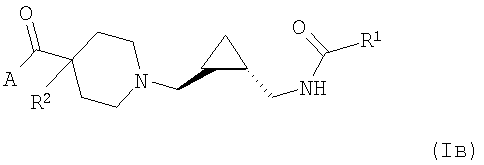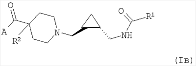 24. Соединение по п.23 формулы (Iв), где данное соединение выбрано из группы, состоящей из N-{транс-2-[4-(4-фтор-бензоил)-пиперидин-1-илметил]-циклопропилметил}-3-(5-метил-[1,2,4]оксадиазол-3-ил)-бензамида; 1-(4-Хлор-фенил)-3-{транс-2-[4-(4-фтор-бензоил)-пиперидин-1-илметил]-циклопропилметил}-мочевины; 2-(4-Хлор-фенил)-N-{транс-2-[4-(4-фтор-бензоил)-пиперидин-1-илметил]-циклопропилметил}-изобутирамида и 4-Хлор-N-{транс-2-[4-(4-фтор-бензоил)-пиперидин-1-илметил]-циклопропилметил}-бензамида.