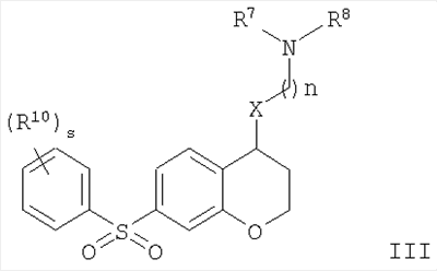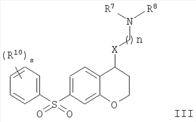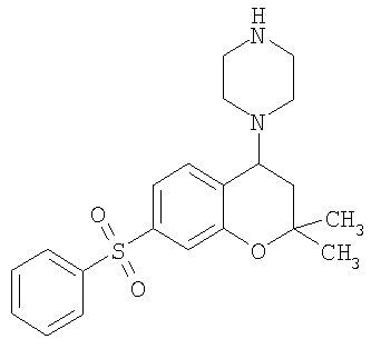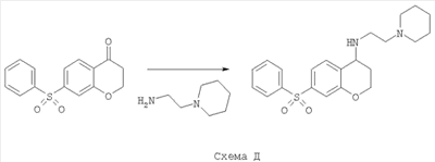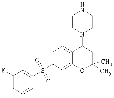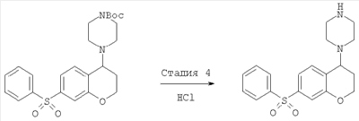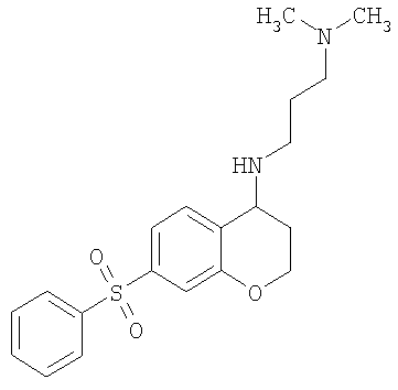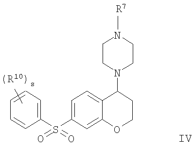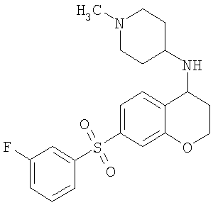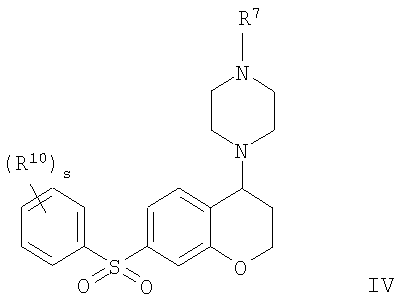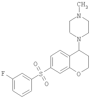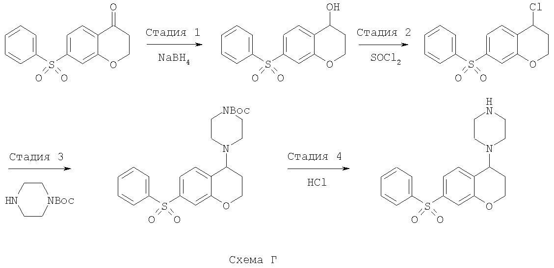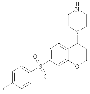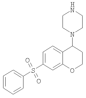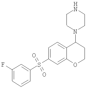 С использованием методики данного Примера тестировали соединения формулы I, и было обнаружено, что они являются селективными 5-НТ6-антагонистами, селективными 5-HT2A-антагонистами или селективными антагонистами обоих рецепторов. Например, соединение 1-(7-бензолсульфонил-хроман-4-ил)пиперазин показывало pKi приблизительно 9,38 для 5-НТ6 и pKi приблизительно 7,33 для 5-НТ2А.