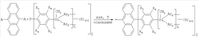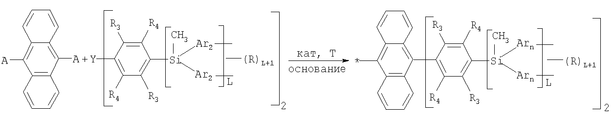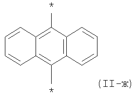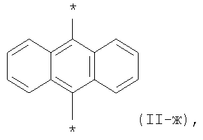 В частности, в формуле (I) X может означать антрацен-9,10-диил (II-д), с условием, что Q означает фенил-1,4-диил, выбранный из ряда соединений формулы (II-б), m равно 1, k равно 1, тогда общая формула имеет следующий вид: