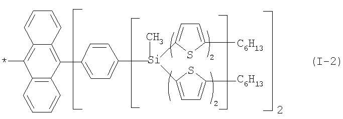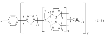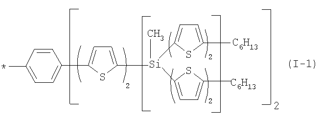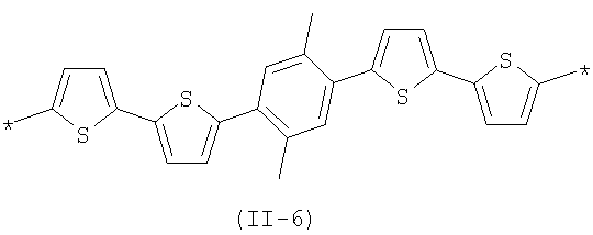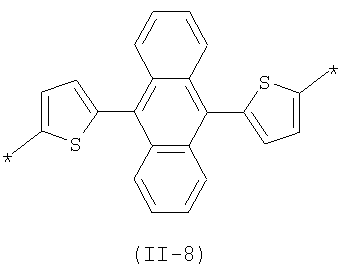 Положения, отмеченные в формулах (II-а)-(II-к) знаком * (звездочка), являются точками соединения, в которых структурные фрагменты (II-а)-(II-к) связаны друг с другом в форме линейных сопряженных олигомерных цепей Arn (или Xm или Qk) или концами цепей Arn (или Qk), связанных с атомами кремния в точках ветвления, или концами цепей Arn, связанных с концевыми заместителями R.