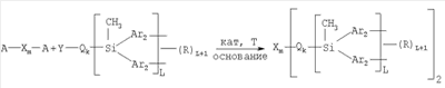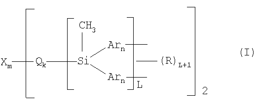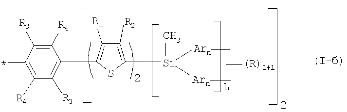 В частности, для разветвленных олигоарилсиланов второй генерации L равно 3, и для них формула (I) принимает следующий вид: