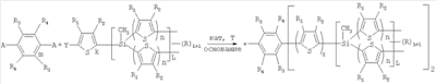 В частности, Ar в соединении формулы (III) может означать тиенил-2,5-диил, выбранный из ряда соединений формулы (II-а), тогда разветвленный олигоарилсилан получают по следующей общей схеме: