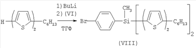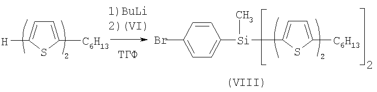 Пример 3. Синтез (4-бромфенил)[бис(5 -гексил-2,2 -битиенил-5-ил)]метилсилана (VIII)