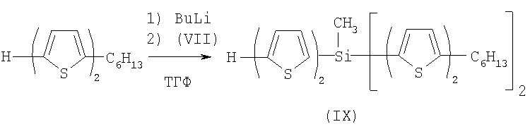 Пример 4. Синтез 2,2 -битиен-5-ил[бис(5 -гексил-2,2 -битиен-5-ил)]метилсилана (IX)