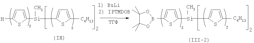 Пример 7. Синтез бис(5 -гексил-2,2,-битиен-5-ил)(метил)[5 -(4,4,5,5-тетраметил-1,3,2-диоксиборолан-2-ил)-2,2 -битиен-5-ил]силан (III-2)