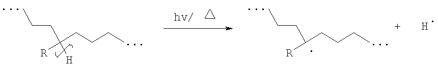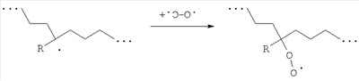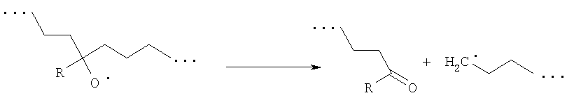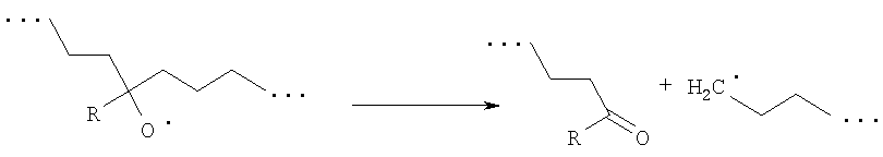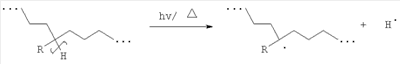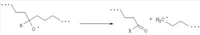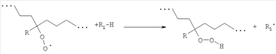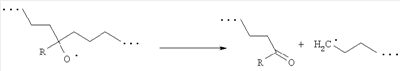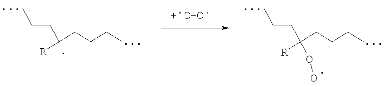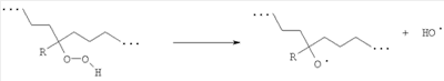 Реакции формулы 1а и формулы 1b приводят к окислению и разрыву цепи полиолефина. Помимо прочего, это подразумевает потерю относительного удлинения при разрыве и жесткости. Полимерный материал становится хрупким, а растворимость в воде увеличивается. Подобные реакции будут протекать в большинстве термопластичных материалов.