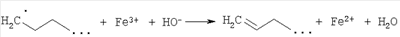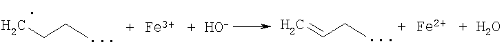 Вместо Fe3+ могут быть использованы и ионы других металлов, обладающие окислительными свойствами, или другие окисляющие вещества, такие как хиноны. Гидроксилобразующие радикалы возникают, например, в результате воздействия стимулятора разложения на подходящие для использования химические соединения (см. формулу 2е). Вместо гидроксильных радикалов могут быть активными также и другие радикалы, образованные в результате воздействия стимулятора разложения. Антиоксидант на основе производных бензофуранона и гидроксиламинов и акцепторы радикалов на основе производных тетраметилпиперидина вступают в реакцию по способу, соответствующему случаю пространственно затрудненных фенолов.