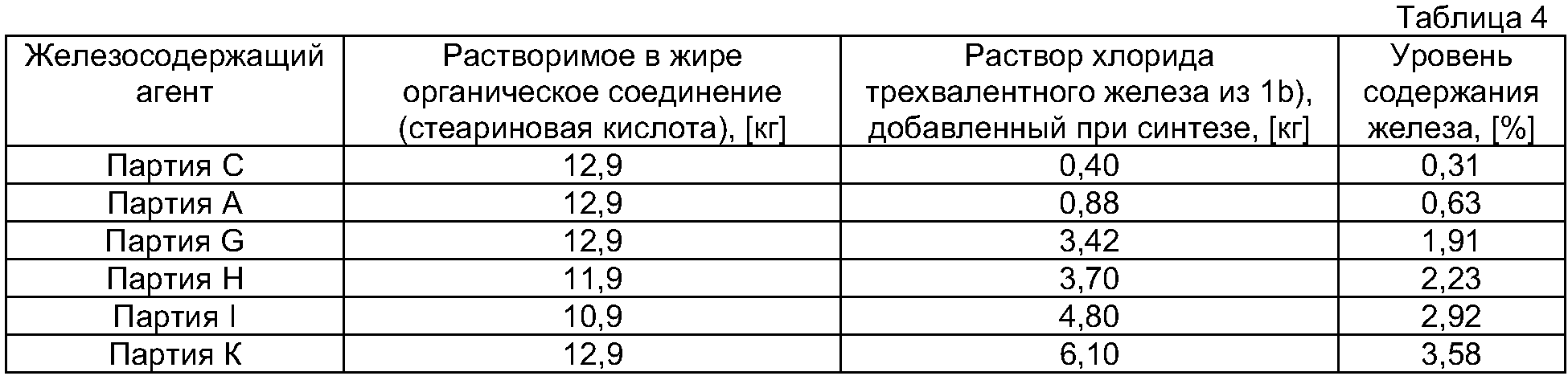Синтез стеаратов, таких как стеарат железа (трехвалентного железа), описывается в периодической литературе (H.B.Abrahamson, H.C.Lukaski, Journal of Inorganic Biochemistry, 54, 115-130 (1994)) и патентных публикациях (US 5434277).