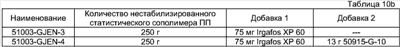 Таблица 2 демонстрирует типичную пригодность различных типов стабилизаторов в качестве технологического стабилизатора и долговременного стабилизатора.