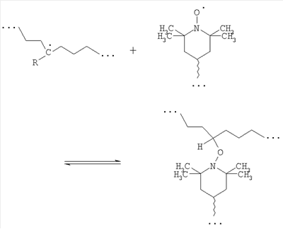 Акцепторы радикалов, такие как соединения на основе производных тетраметилпиперидина – так называемые пространственно затрудненные амины, обратимо рекомбинируют с различными типами реакционно-способных радикалов. Таким образом, концентрация реакционно-способных радикалов, таких как углеродцентрированные полимерные радикалы, уменьшается.