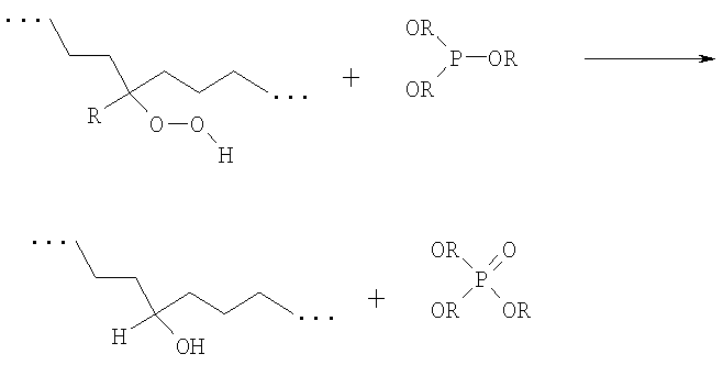 Органические фосфиты обеспечивают разложение групп гидроперекисей в полимерной цепи. Тем самым образуются нерадикальные соединения. Органические фосфиты стехиометрически вступают в реакцию с группами гидроперекисей в полимерной цепи, то есть разложение одного моля групп гидроперекисей требует наличия одного моля органического фосфита.