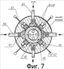 Выше колпачковой ванны 57 выполнен охлаждающий (разогревающий) конденсатор 61, который состоит из нижнего и верхнего усеченного конуса 62, 63, наружного и внутреннего цилиндров 64, 65, причем внутренний дренажный цилиндр 65 выполнен выше установленной переливной трубки 66, переливная трубка 66 выполнена выше бокового патрубка 67. Выше конденсатора 61 расположен проволочный каплеуловитель 68, через который проходит регулятор 69 колпачкового клапана 58. Верхнее отверстие 56 полусферической крышки 55 содержит разделительный клапан 70, который прикреплен к трубопроводу 71 с патрубком 72 корпуса 7, и дроссельный клапан 73 корпуса 14, нижнее отверстие 52 крышки 51 разделительный клапан 74, трубопровод 75 с патрубком 76 корпуса 7. Корпус 7 содержит водяную рубашку 77, корпус 14 содержит водяную рубашку 78, корпус 36 содержит водяную рубашку 79.