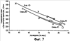 На фигуре 7 приведены данные по сравнению конверсии углеводородов и содержания серы в бензиновой фракции, полученные согласно изобретению (Образец 4В и С, Пример 4) с соответствующими значениями, полученными в присутствии каталитической композиции (Образец 4А), в которой часть компонента кислоты Льюиса заменена на 0,15 мас.% Na2O.