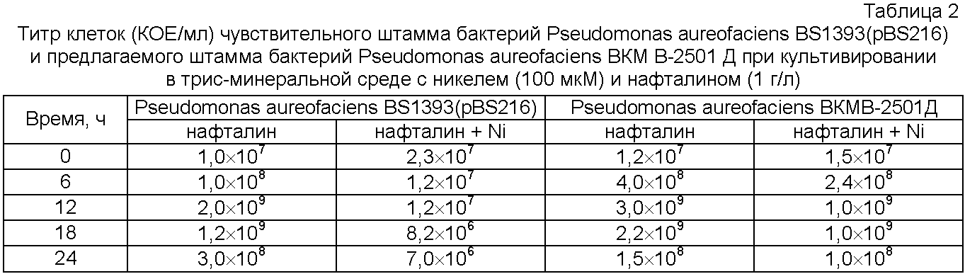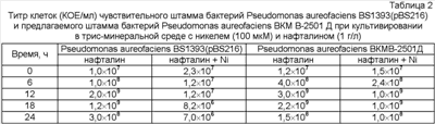 (54) ШТАММ БАКТЕРИЙ Pseudomonas aureofaciens ВКМ В-2501 Д ДЛЯ БИОДЕГРАДАЦИИ ПОЛИЦИКЛИЧЕСКИХ АРОМАТИЧЕСКИХ УГЛЕВОДОРОДОВ В УСЛОВИЯХ ЗАГРЯЗНЕНИЯ ПОЧВ СОЛЯМИ НИКЕЛЯ