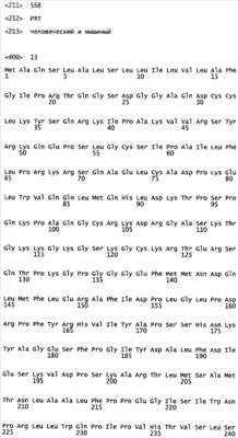 Изобретение также относится к аминокислотной последовательности, кодируемой SEQ ID NO:12. Эта аминокислотная последовательность представляет собой SEQ ID NO:13
