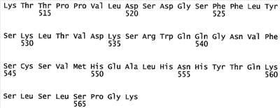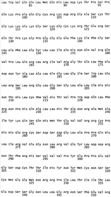 мРНК экстрагировали из лимфатических узлов пациента, страдающего раком. С использованием методов, хорошо известных специалистам, сайт Kpnl эндонуклеазы рестрикции был добавлен к прямому праймеру SLC (5′-cggtaccacagacatggctcagtcac-3′) и последовательность, кодирующая три глицина и сайт EcoRI эндонуклеазы рестрикции, была добавлена к обратному праймеру SLC (5′-taaattctcctcctcctggccctttagg-3′). Ген SLC был получен ОТ-ПЦР амплификацией. Полученный фрагмент был очищен и вставлен в вектор pUCmT для секвенирования (pUC-SLC). Результаты показывают, что последовательность полученного фрагмента соответствует запланированной последовательности (подчеркнутый фрагмент).