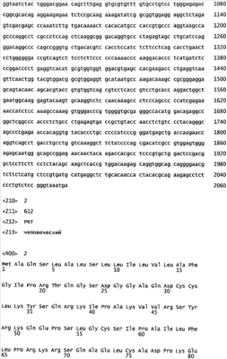Тотальная РНК была экстрагирована из клеточной линии человеческого рака простаты LNCaP. ОТ-ПЦР была осуществлена с использованием прямого праймера (5′-TCTCGAGGGC GGTGTTCTGGTGCA-3′) и обратного праймера (5′-AGATATCATGTCC AGCGTCCAGCAC-3′). После электрофореза была вырезана полоса размером около 600 п.н. Фрагмент был очищен и извлечен методом Glass Milk. Полученный фрагмент был вставлен в вектор pUCm-T с получением pUCm-PSA. Положительный клон были взят и секвенирован. Результаты показаны в SEQ ID NO: 9. Полученный фрагмент гена соответствует последовательности с положения 151 до положения 609 ОРС человеческого PSA. Последовательность с положения 45 до положения 503 в полученной последовательности является последовательностью по изобретению.