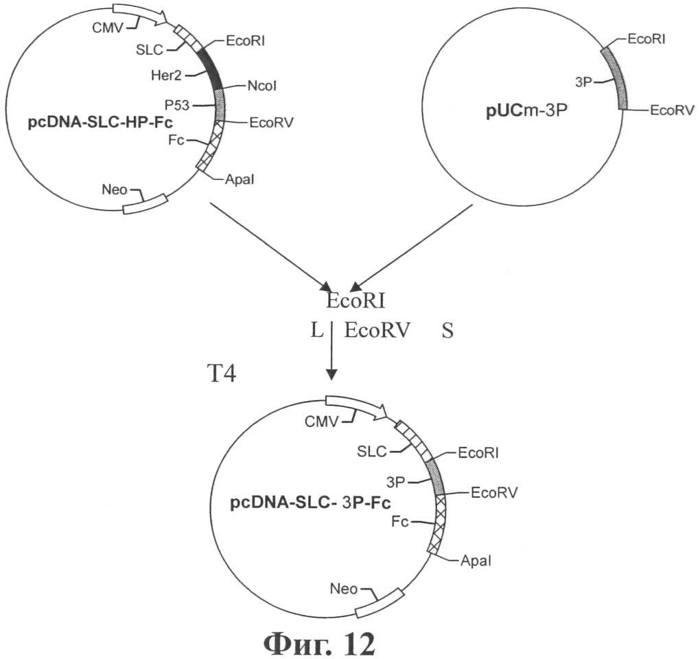Фиг.12 показывает конструкцию плазмиды pSLC-3P-Fc.