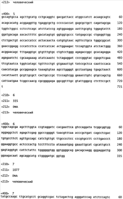 В данном изобретении секвенирование продуктов ПЦР осуществляли с использованием 377 ДНК секвенатора (фирма ABI) методом четырехцветного флуоресцентного терминаторного секвенирования, основанного на методе Сэнгера терминирующих дидезоксинуклеотидов. Последовательность с положения 36 до положения 464 представляет собой последовательность клонированного фрагмента по изобретению (ссылка на SEQ ID NO: 3).