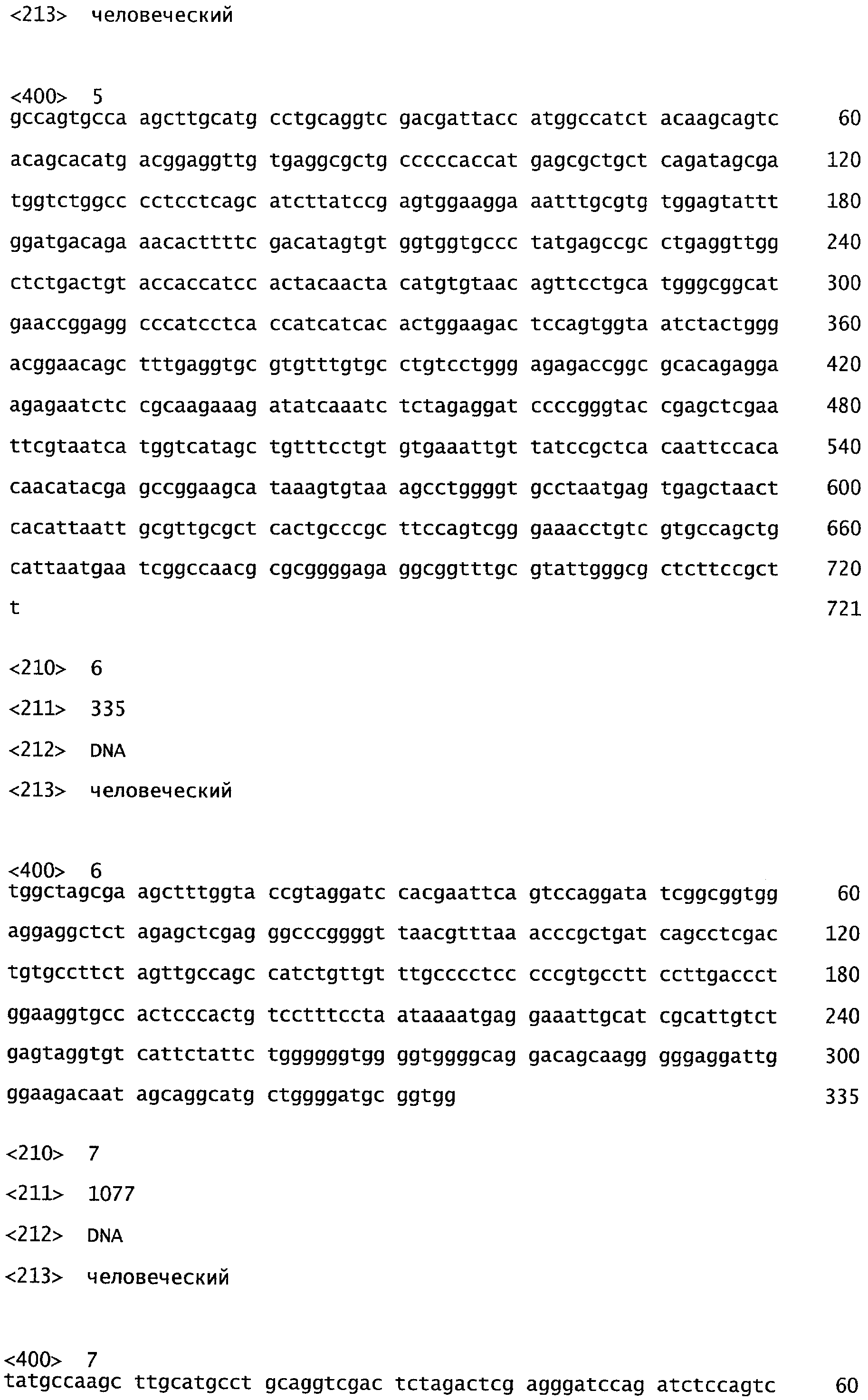 Результаты секвенирования химически синтезированного полилинкера показаны в SEQ ID NO: 6, где последовательность с положения 3 до положения 100 представляет собой последовательность фрагмента по изобретению.