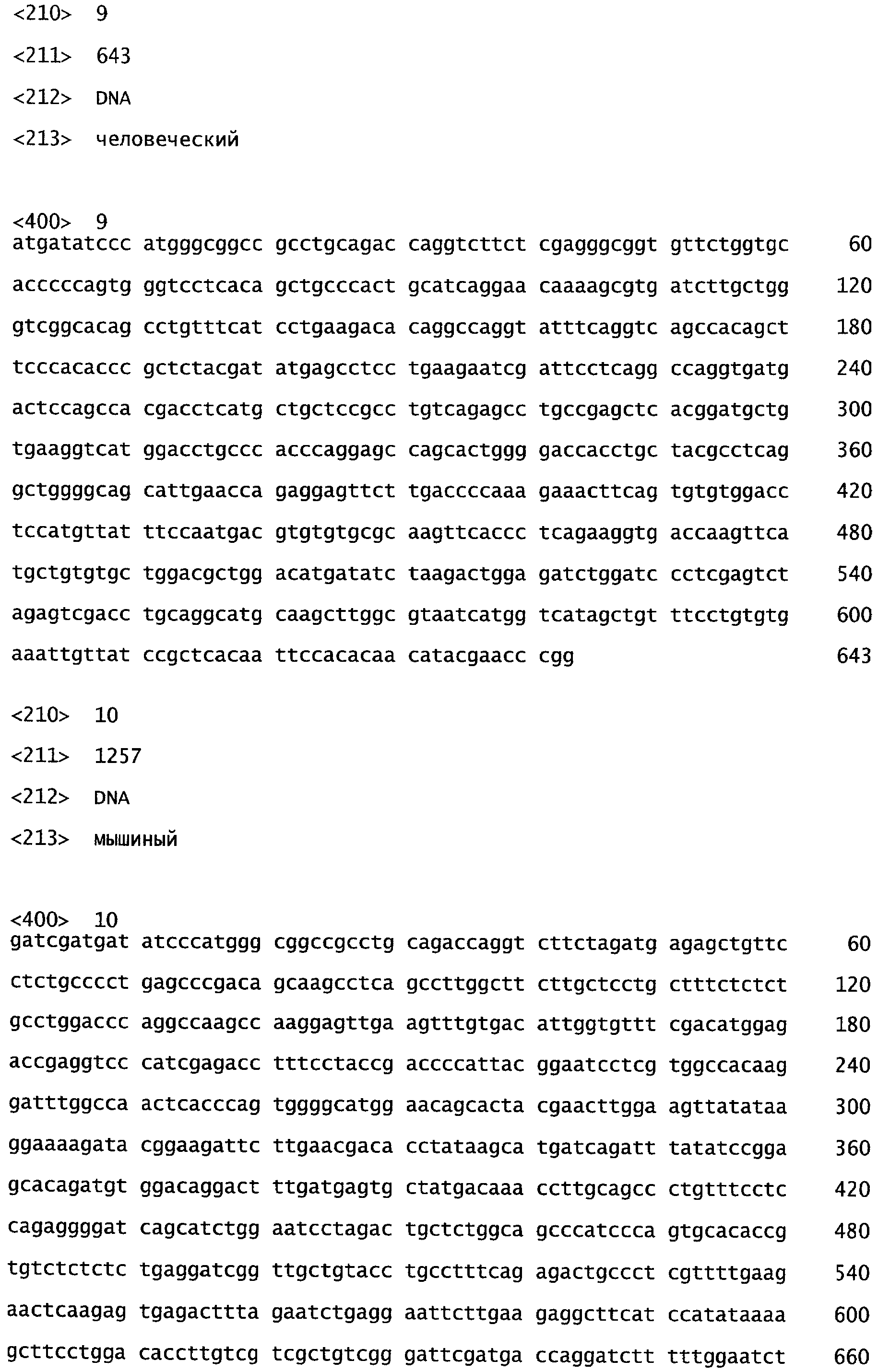 WO 02058723 А2, 01.08.2002. ЕО S.K. et aL, Immunopotentiation of DNA vaccine against herpes simplex virus via co-delivery of plasmid DNA expressing CCR7 ligands, Vaccine, 2001, v.19, n.32, p.4685-4693. YOU Z. et al., Targeting dendritic cells to enhance DNA vaccine potency, Cancer Res., 2001, v.61, n.9, p.3704-3711. KELLERMANN S.A. et al., The CCchemokine receptor-7 ligands 6Ckine and macrophage inflammatory protein-3 beta are potent chemoattractants for in vitro- and in vivo-derived dendritic cells, J. Immunol., 1999, v.162, n.7, p.3859-3864. SHARMA S. et al., Secondary lymphoid tissue chemokine mediates Т cell-dependent antitumor responses in vivo, J. Immunol., 2000, v.164, n.9, p.4558-4563. VICARI A.P. et al., Antitumor effects of the mouse chemokine 6Ckine/SLC through angiostatic and immunological mechanisms, J. Immunol., 2000, v.165, n.4), p.1992-2000. WO 1999058658, 18.11.1999. WO 2002034287, 02.05.2002. WO 0152884 A1, 26.07.2001. WO 0127146 А2, 19.04.2001. RU 2001124907 A, 20.06.2003.