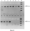 Фиг.4 представляет результаты проведения стадии ОТ-ПЦР с праймерами, последовательности которых представлены SEQ ID NO: 53 и 54, для образцов РНК ВГС, имеющих различные генотипы и подтипы. Обозначения (дорожки геля):