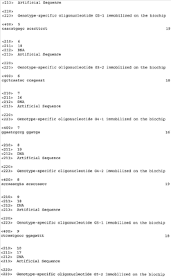 Наконец, в еще одном своем воплощении способ дополнительно включает оценку и прогнозирование тяжести протекания заболевания (острый/хронический цирроз, вероятность развития рака печени), определение терапевтической дозы лекарственных препаратов и длительности курса терапии, и/или эпидемиологическое генотипирование на основе проведенной интерпретации результатов гибридизации.