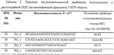 GERMER J.J. et al. “Evaluation of the TRUGENE HCV 5’NC genotyping kit with the new GeneLibrarian module 3.1.2 for genotyping of hepatitis С virus from clinical specimens”, J Clin Microbiol. 2003 Oct; 41(10):4855-7. KREKULOVA L. et al., “Nested restriction site-specific PCR to detect and type hepatitis С virus (HCV): a rapid method to distinguishHCV subtype 1b from other genotypes”, J Clin Microbiol. 2001 May; 39(5): 1774-80. HAVERSTICK D.M. et al., “Genotyping of hepatitis С virus by melting curve analysis: analytical characteristics and performance”, Clin Chem. 2004 Dec; 50(12):2405-7. RU 2226694 C2, 10.04.2004.