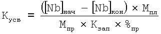 где Мпл – масса плавки, т; Кусв – коэффициент усвоения (принят 90% по заводской статистике); [Nb] – планируемое содержание ниобия в металле, %; %пр – среднее содержание ниобия в наполнителе, %; Кзап – коэффициент заполнения феррониобия в порошковой проволоке (принят 0,78). 2. Отдача порошковой проволоки с феррониобием 60 с последующим отбором пробы металла и определением содержания в ней ниобия. 3. Расчет фактического коэффициента усвоения ниобия: