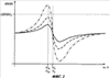На фигуре 2 показана диаграмма подъемов dA/dn для показанных на фигуре 1 графиков в зависимости от числа оборотов n. При этом на диаграмме показаны графики для малого (сплошная линия), среднего (пунктирная линия) и большого дисбаланса белья (штрихпунктирная линия). Подъем dA/dn демонстрирует максимум при числе оборотов n0, которое меньше резонансного числа оборотов n0. Горизонтальная пунктирная линия на диаграмме фигуры 2 обозначает предельное значение (dA/dn)1 изменения амплитуды колебаний А, причем в показанном примере предельное значение (dA/dn)1 превышается только при большом дисбалансе белья. Превышение предельного значения (dA/dn)1 наблюдается уже при числе оборотов, которое меньше числа оборотов nw или числа оборотов n0. Это означает, что благодаря контролю за изменением dA/dn амплитуды колебаний А можно определить возможное превышение амплитуды колебаний в момент времени, в который амплитуда колебаний А еще существенно меньше предельного значения A1. Поэтому большие амплитуды колебаний А могут быть своевременно спрогнозированы путем контроля за подъемом dA/dn или изменением dA/dn амплитуды колебаний А.