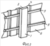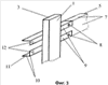 Осуществление способа по второму варианту исполнения изобретения. Изобретение реализуется при изготовлении забора третьей конструкции (фиг.2). В состав забора входят столб 1, лаги 5, средство крепления лаг к столбам, штакетник (на чертеже не показан). Средство крепления лаг к столбам представляет собой металлический уголок 9, имеющий поперечное Г-образное сечение. Металлический уголок 9 имеет две полочки 10. Стороны полочек 10 металлического уголка 9, образующие прямой угол являются внутренними 11, а образующие угол в 270 градусов – внешними 7. С одной из внешних сторон 7 металлического уголка 9 выполнены отверстия 12 для крепежа 8. Металлический уголок 9 одной из своих полочек 10 приварен к столбу 1 внешней стороной 7 с отверстиями 12. Металлические уголки 9 расположены парами. В паре металлические уголки 9 обращены друг к другу внутренними сторонами 11. Пары металлических уголков 9 располагаются горизонтально с одной стороны столба 1 в двух и более местах (например, в верхней и нижней частях столба 1). Между металлическими уголками 9, составляющими пару, со стороны, противоположной столбу 1, устанавливаются лаги 5, представляющие собой деревянные бруски. Концы лаг 5 могут быть расположены встык между металлическими уголками 9, составляющими пару. Лаги 5 прикреплены к металлическим уголкам 9 с помощью крепежа 8. К лагам 5 гвоздями прибивается штакетник (на чертеже не указан).