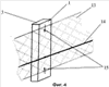 Основным элементом забора является столб 1. Столб 1 представляет собой отрезок металлической трубы прямоугольного, квадратного или круглого сечения (например, диаметр трубы может составлять 76 мм). Верхний торец столба 1 закрыт крышкой 3, выполненной из того же материала. Крышка 3 приварена к столбу 1. Столбы 1 на поверхности земли 2, как правило, располагаются в линию по периметру ограждаемого участка.