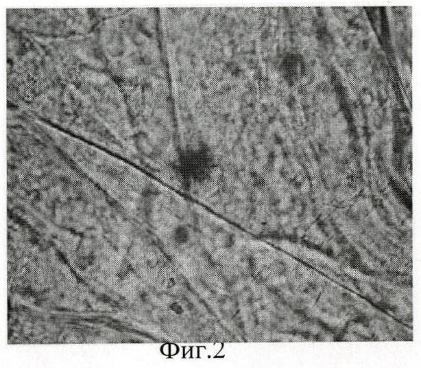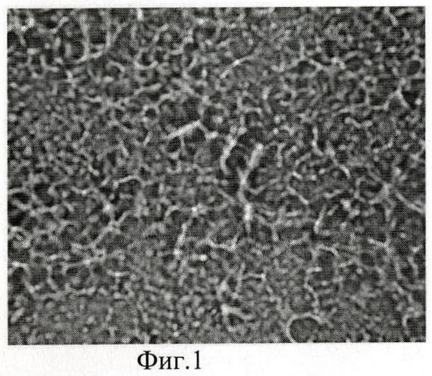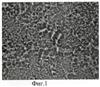 На фиг.1 представлена микрофотография поверхности геля на основе ПГХА-жидкого, а на фиг.2 представлена микрофотография поверхности геля на основе ПГХА-твердого, увеличение ×500. Из микрофотографий следует, что, в отличие от аморфных гелей на основе ПГХА-жидкого (фиг.1), гели с использованием ПГХА-твердого (фиг.2) имеют явно выраженную анизометрическую структуру. Это связано с ориентирующим влиянием макромолекул полиакриламида в определенной конформации, вызванной присутствием в ПГХА-Т низкомолекулярного полиэлектролита – MgCl2.