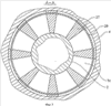 Кроме того, кольцевые направляющие элементы 28, 29, 128, 129 могут быть закреплены и удерживаться в рабочем положении другим путем, а не с помощью стоек. К тому же не все двигатели могут быть снабжены стойками. В качестве альтернативы вышеописанной конфигурации промежуточного газового канала расстояние по радиусу между формирующими газовый канал стенками у выхода может быть меньше, чем расстояние по радиусу между формирующими газовый канал стенками у входа, если газовый канал выполнен так, что имеет большое радиальное смещение между входом и выходом.