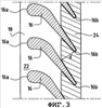 Как показано на фиг.3, кольцевой элемент 24 расположен тангенциально по всей окружности наружной площадки 18 направляющего соплового аппарата и в осевом направлении – практически по всей длине критического сечения направляющего соплового аппарата. Для этого он содержит вырезы, охватывающие по контуру лопатки 16, оставляя, тем не менее, небольшое пространство между элементом и лопатками (на фиг.3 не показано) с учетом возможного расширения лопаток.