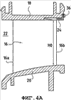 На фиг.4А показан этот же направляющий сопловой аппарат при наличии расширения его площадок. Это состояние соответствует режимам работы газотурбинного двигателя, отличным от режима малого газа (например, при максимальном числе оборотов).