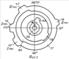 Камера 1 снабжена свечей зажигания 44. Каждый кулачок 15А, 16А, 17А и 18А имеет выступы (фиг.2), которыми он взаимодействует с клапанами 15, 16, 17 и 18, а кулачок 37 имеет четыре выступа 45, 46, 47 и 48, которыми он воздействует на поршень золотника 14. Кулачки установлены на валу 10 так, что выступ каждого кулачка имеет свое угловое положение в соответствии с выполняемой им функцией по цикловой диаграмме работы двигателя и управления процессами, происходящими в нем.